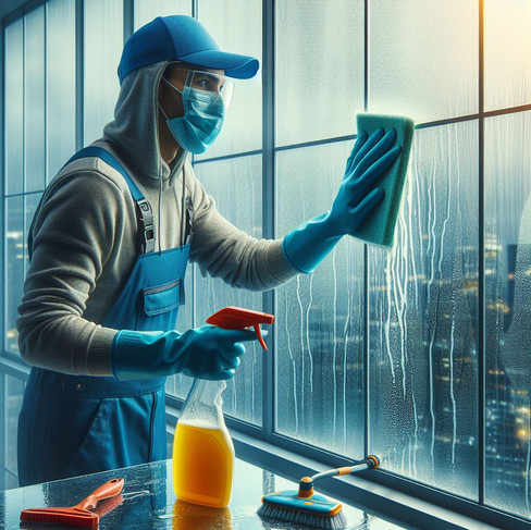 2. Washing: A cleaning solution is applied to the glass and rubbed with a window cleaner or sponge.